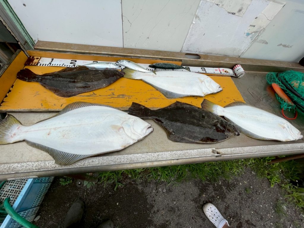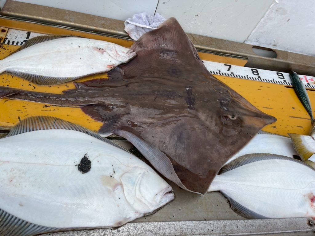 釣果 2025.7.19 釣果報告 本日は、サバ、ヒラメ、エイ、マガレイ、アブラコの釣果です。 潮の悪い日でしたが50cmオーバーが数枚上がっていました。 今日も 場所によって釣果に差があり違う方面に行けば良かったと悔しがるお客様もいました。 今度 是非場所を変えて チャレンジして下さい。