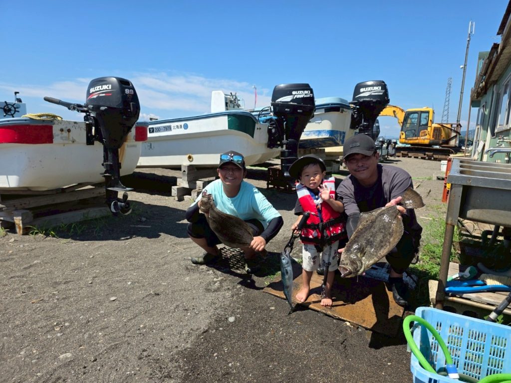 釣果 2025.8.3 釣果報告 本日は、ヒラメ、アブラコ、マガレイ、サバ、ソイの釣果でした。 8月最初の日曜日、とても良い天候で(少し暑過ぎましたが)多くのお客様にご来店をしていただきました。 なかなか食いが渋い状況でしたが、皆様の粘りのお陰で沢山のお魚を見る事ができスタッフも喜んでいます!! 後、折角釣り上げた魚をスカリごと海に流してしまったお客様がいらっしゃいました! 残念です、、、リベンジしに来てくださいね! 明日も天候が良い予報ですので沢山のご来店をお待ちしております。