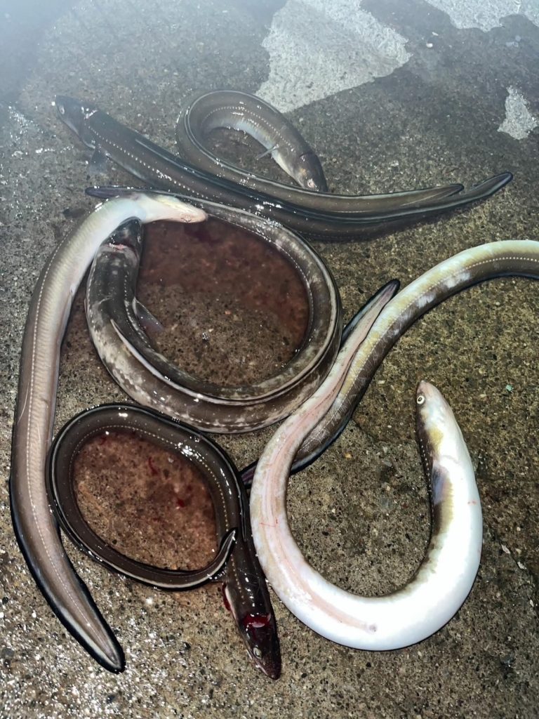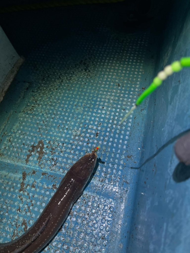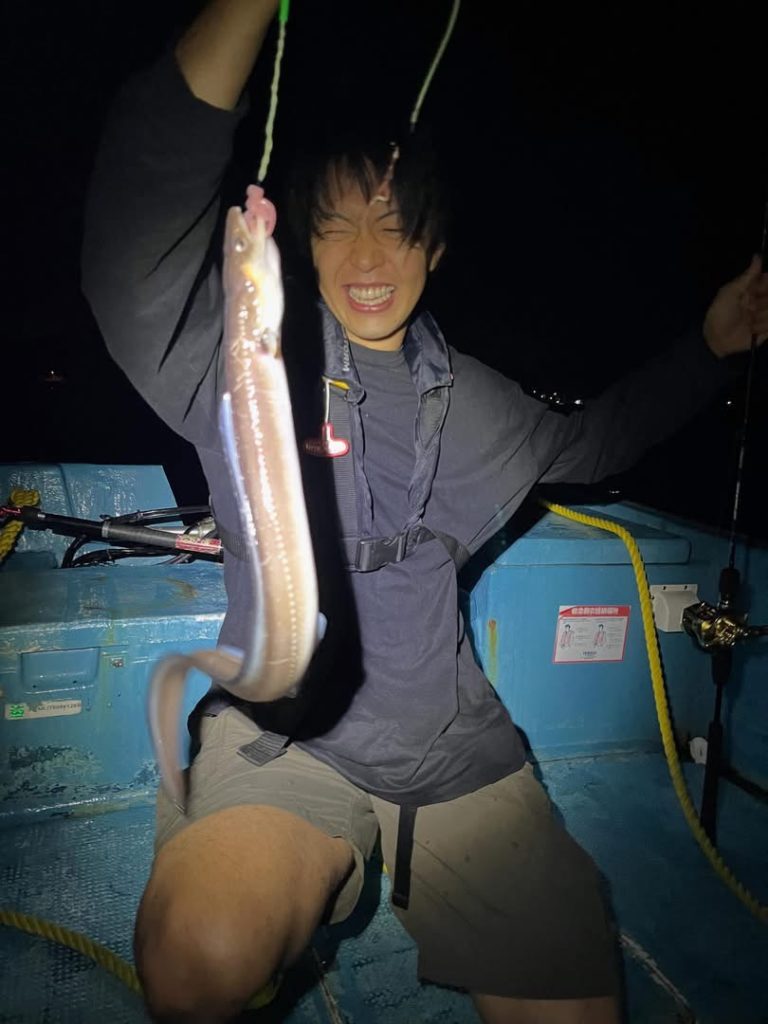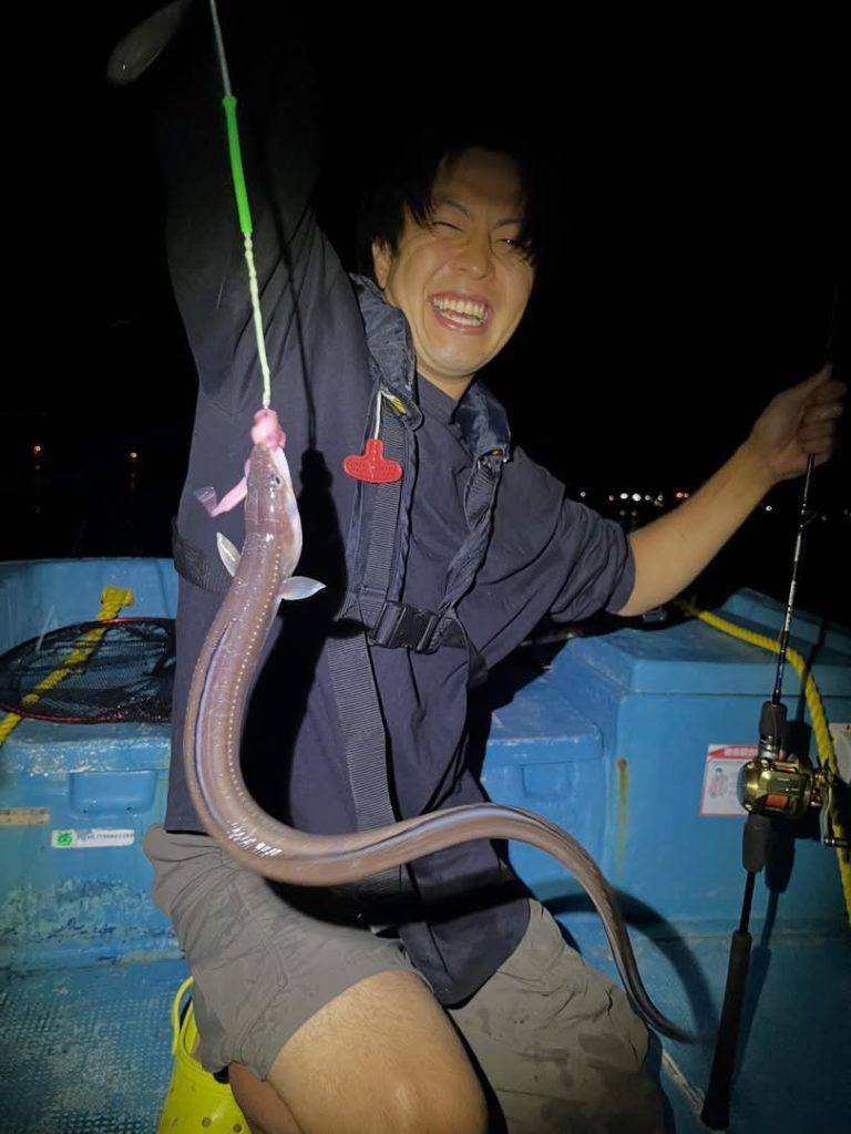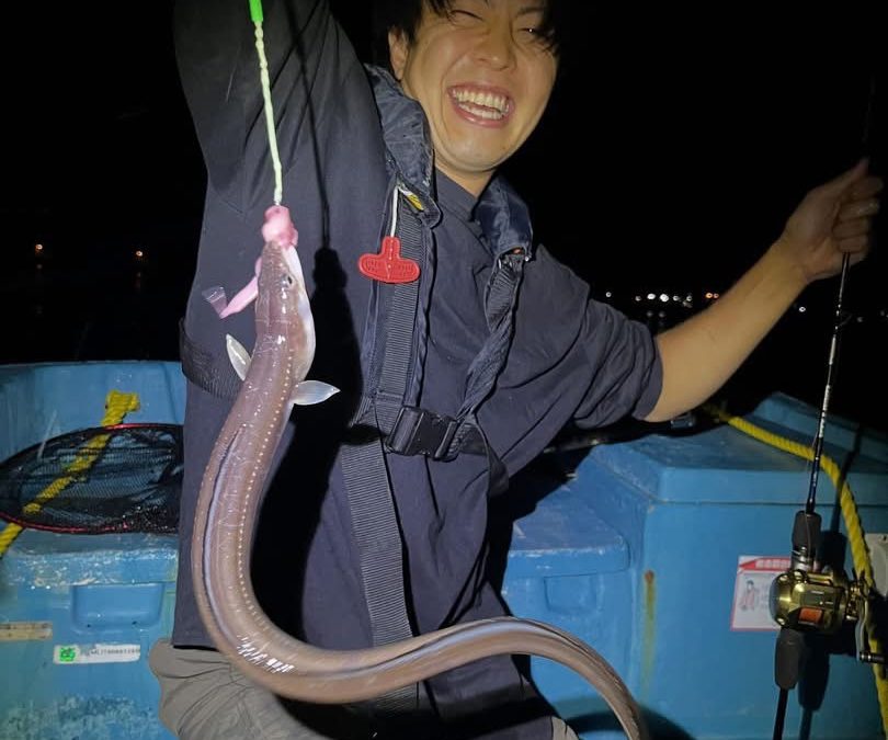 未分類 釣果 2025.9.10夜 遊漁船釣果報告 黄金マリンです! 大変お待たせいたしました、約一か月半ぶりの投稿です!今まではレンタル船のみの投稿でしたが、本日からは遊漁船の情報も載せさせていただきます! 今回は夜ハモ便です!あたりはあるもののなかなか掛からない状態で苦戦しつつも楽しんでもらえました! 航行中ワタリガニを見つけて船内盛り上がってワイワイと楽しんでもらえました!!! サイズも上がってきていい感じです!夜船アナゴいかがでしょうか!